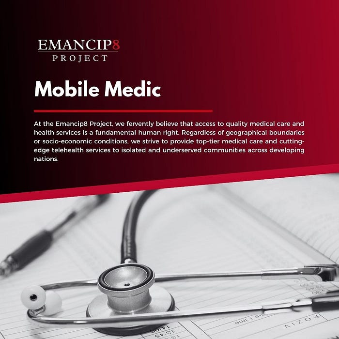 At the Emancip8 Project, we fervently believe that access to quality medical care and health services is a fundamental human right. Regardless of geographical boundaries or socio-economic conditions, we strive to provide top-tier medical care and cutting-edge telehealth services to isolated and underserved communities across developing nations.